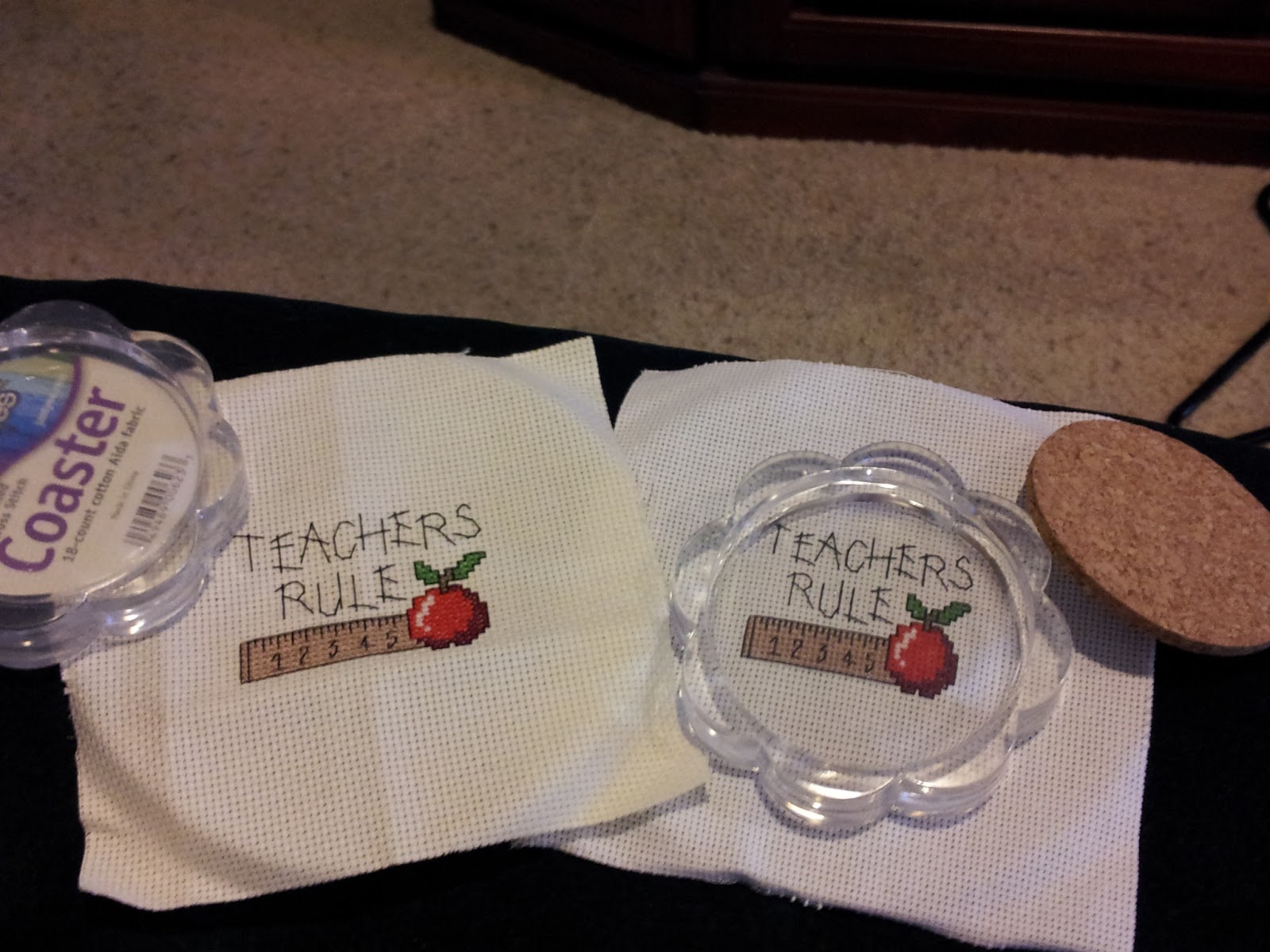 So, in the midst of all this craziness, I am trying to stitch two small teachers gifts to turn into coasters. I am now starting to believe that "Faith" is not going to be done before we leave. I will have to finish it and mail it unframed from Colorado. But, remember "Geraniums"? I am going to finish it - haven't yet made a final decision on how - and give it to my Bible Study teacher. I think she will like it, if nothing else, because I made it.